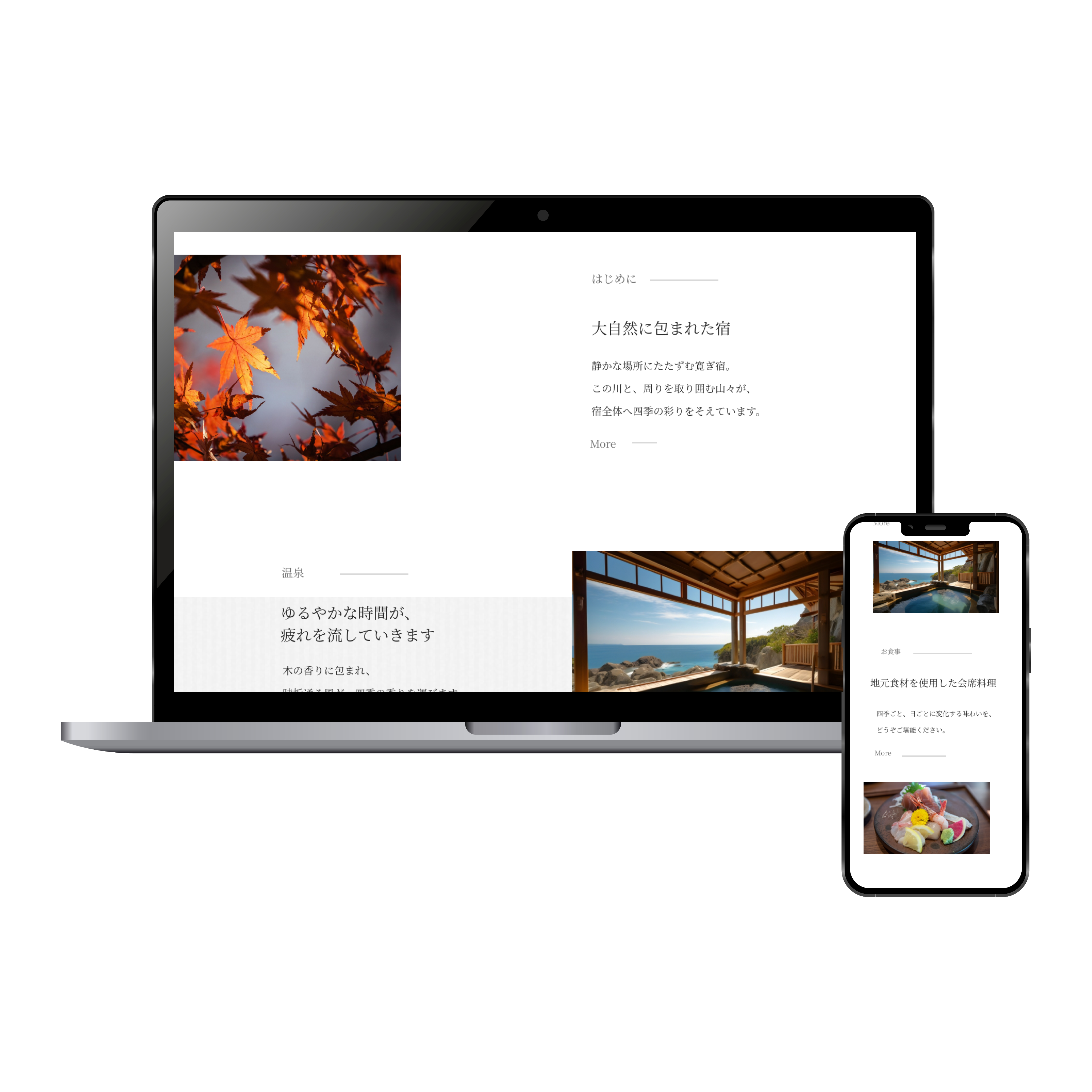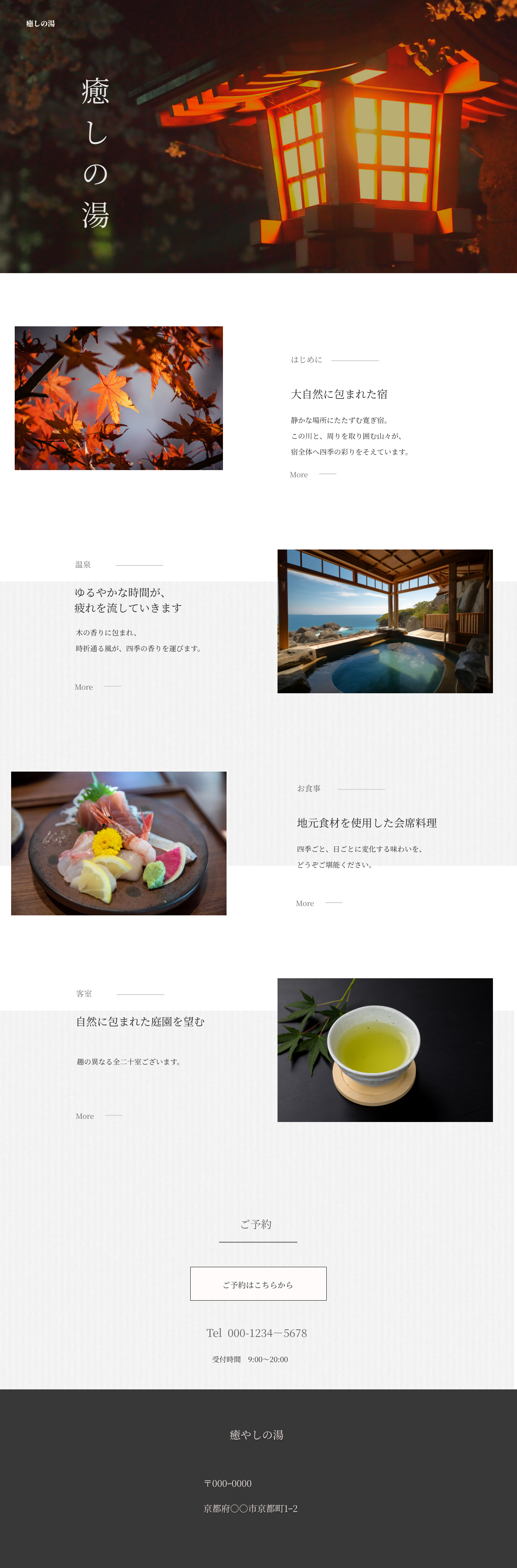 ホームページを一番下まで見て欲しいのでヘッダーは作らず、一つずつ紹介文とそのページに飛べるようにしています。